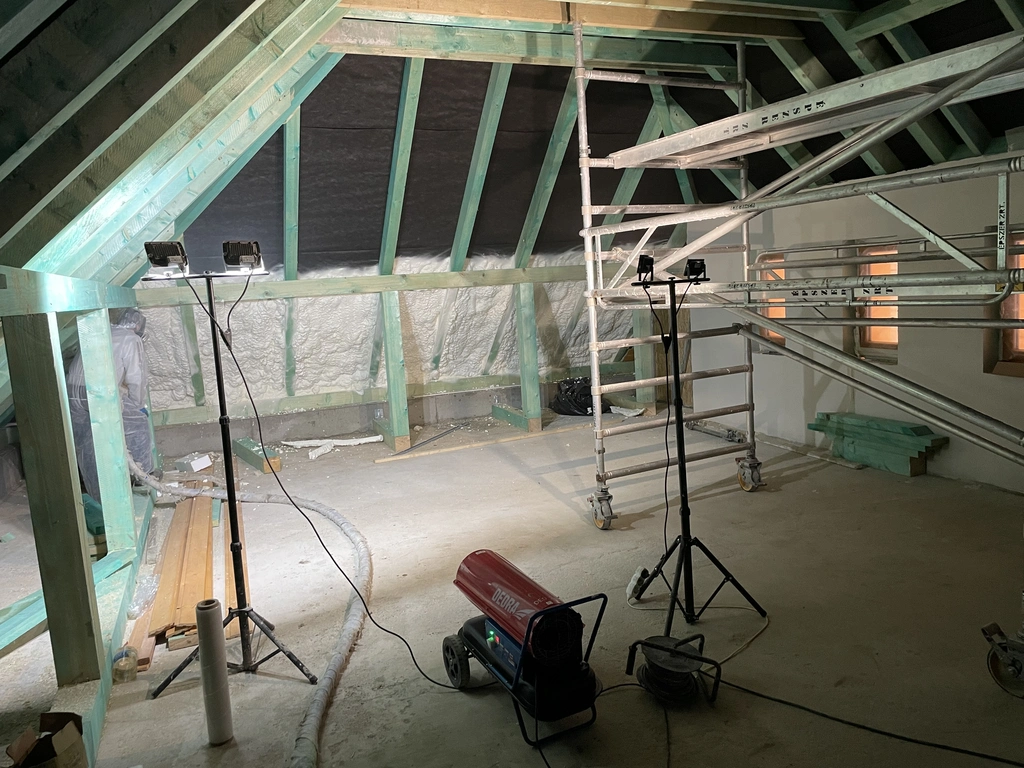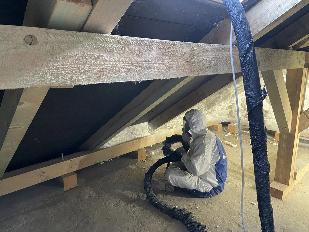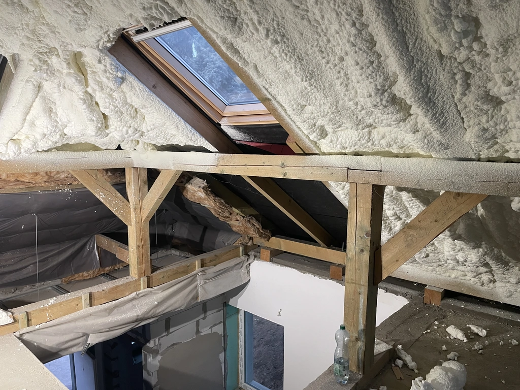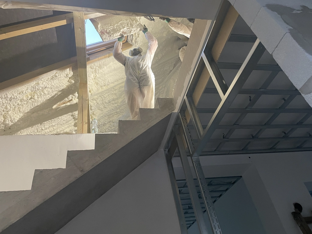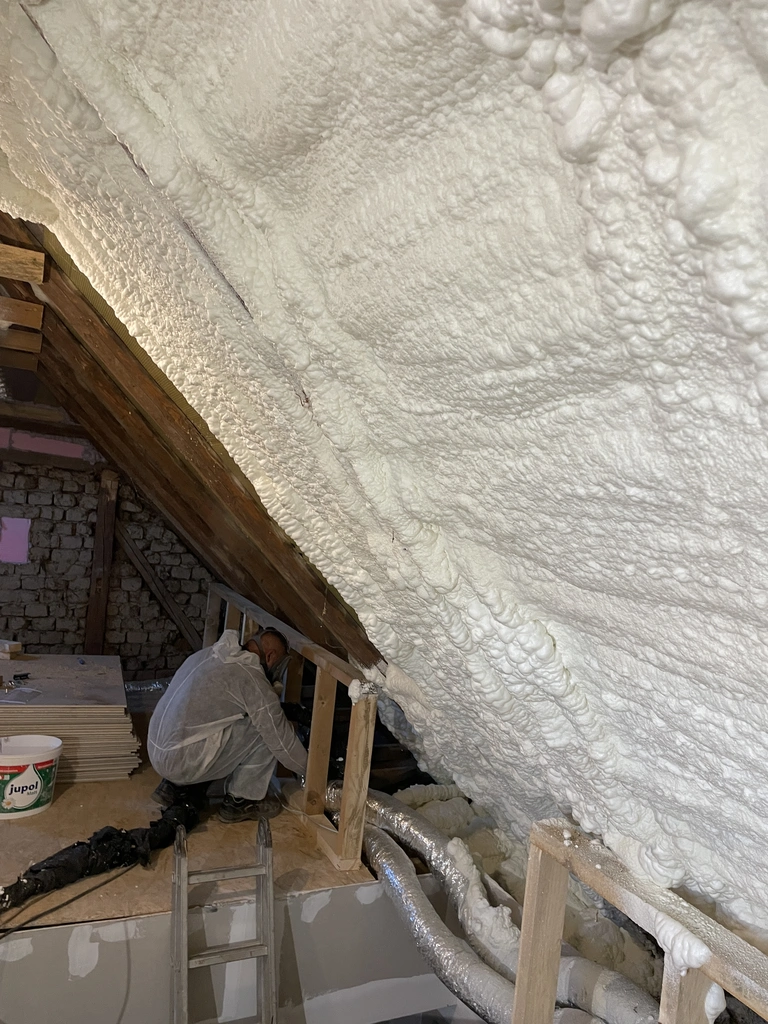 A szigetelés elkészítése során speciális poliuretán habot fújunk fel a kívánt felületre (pl. tető, fal, födém). A hab másodpercek alatt megnövekszik, kitölti a legapróbb réseket, folytonos, hőhídmentes szigetelőréteget képezve.